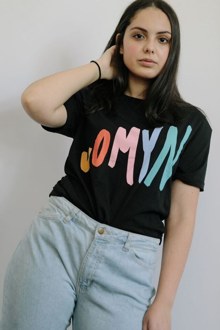First used as a feminist spelling of the word "women" in 1976, Womyn was used as an expression of female independence. That kind of statement doesn't get old, plus it looks great on an 80's inspired graphic tee. Pair with...
