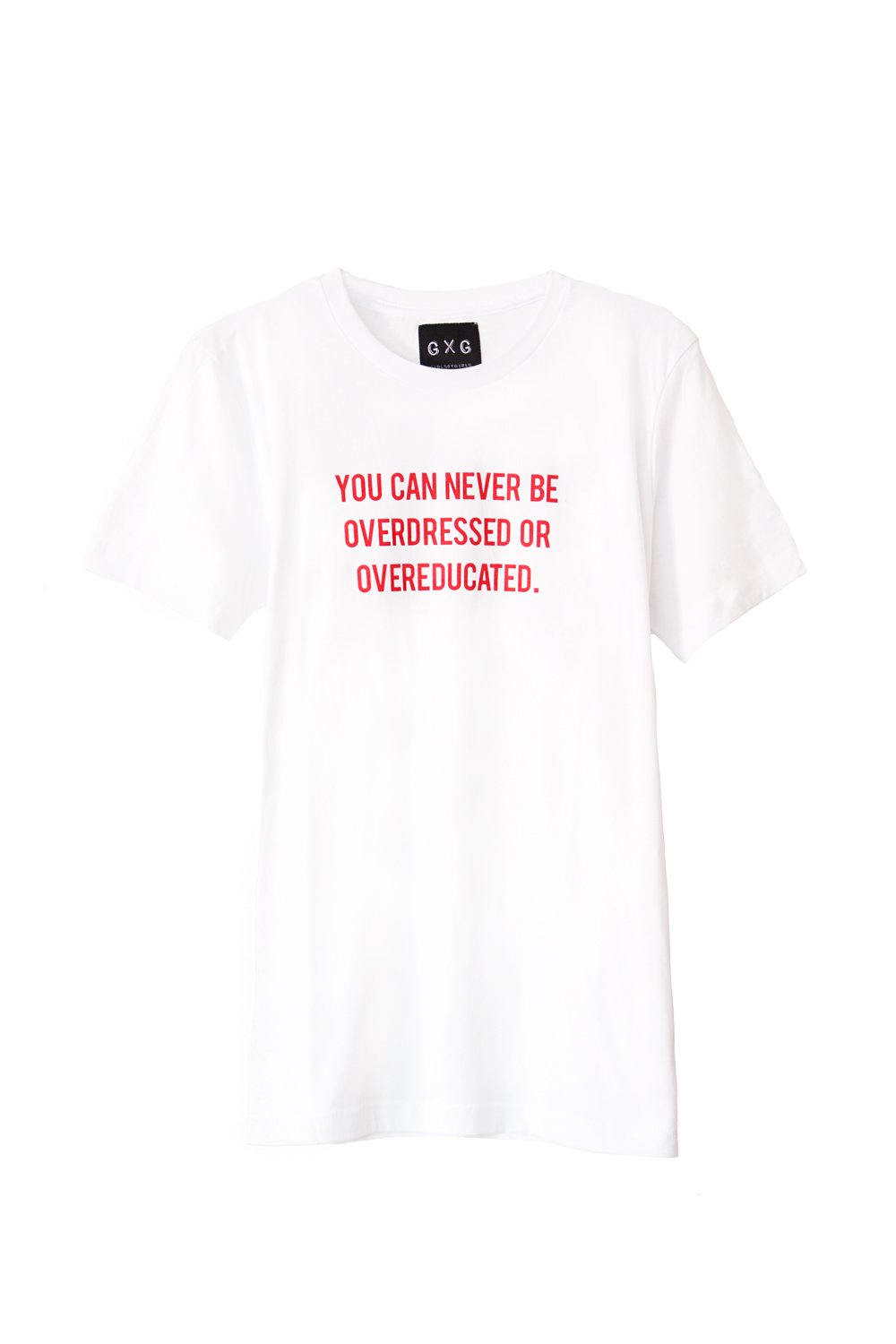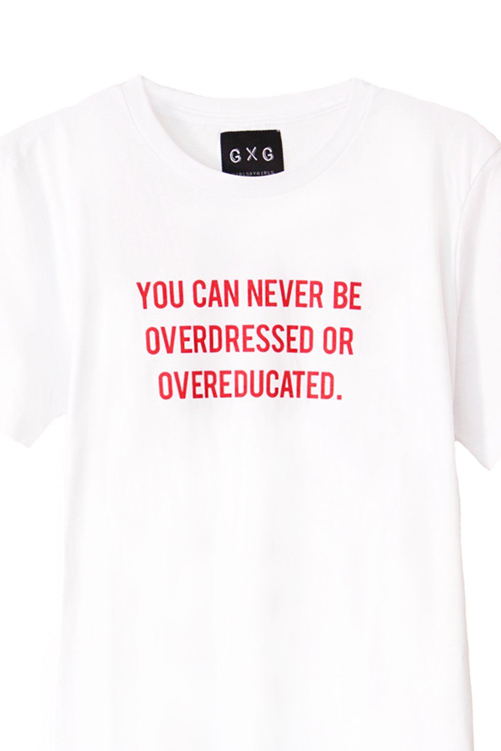 You're never fully dressed without an education or this graphic tee! Soft cotton knit in a slim-cut, longline relaxed fit topped with a banded crew-neck + extra-long short sleeves. Finished with printed graphic. Content + Care- Cotton- Machine wash- Imported...